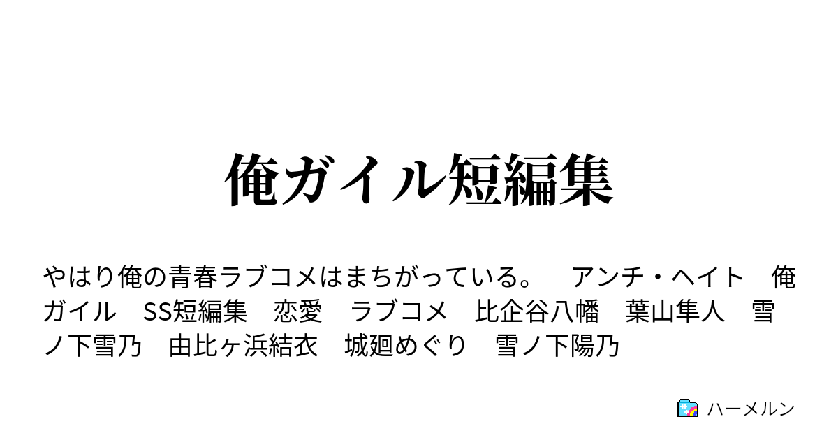 たっしー 俺ガイルpixiv On Twitter ぼくの書いたワンルームssが 書籍化されました 運営の方から連絡来た時はまじで どっきりかと思ったけど もちろんpixivでも読めるのですが 校正とかちゃんとした文章は こちらなので 皆さんよかったら 読んでください